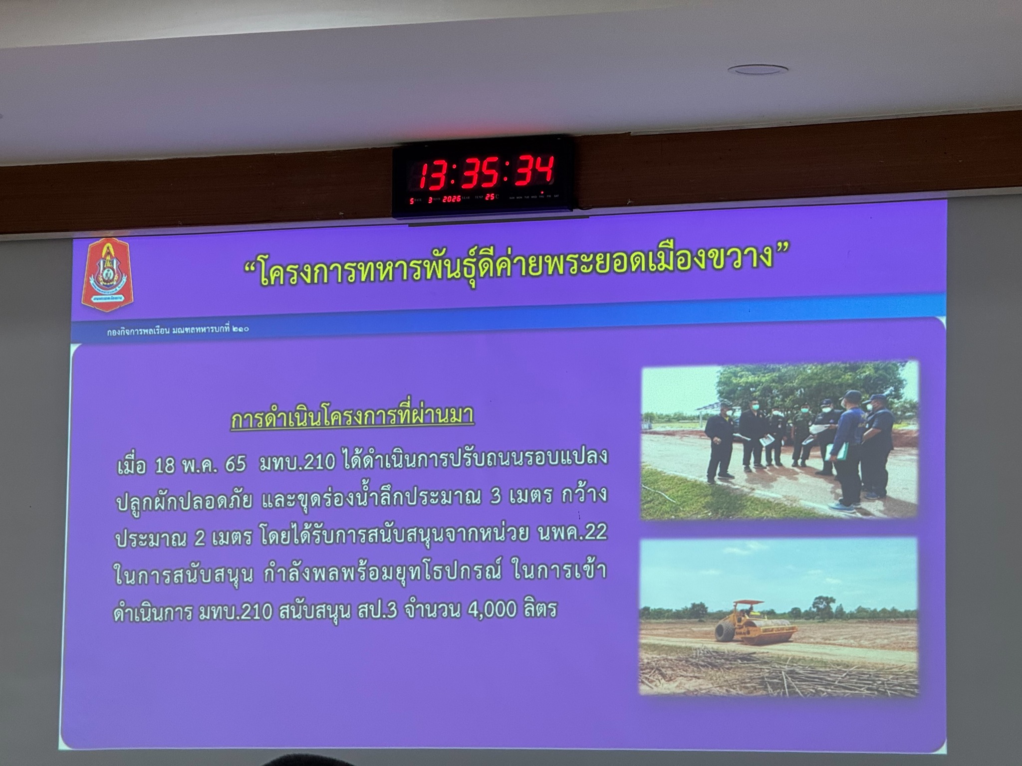 วันที่ 5 มีนาคม 2569 มณฑลทหารบกที่ 210 จัดประชุมปรึกษาหารือเพื่อเตรียมการจัดเตรียมสถานที่และปรับปรุงภูมิทัศน์ภายในโครงการทหารพันธุ์ดี ค่ายพระยอดเมืองขวาง ณ ห้องประชุมพระยอด กองบัญชาการมณฑลทหารบกที่ 210 โดยผู้ช่วยศาสตราจารย์ ดร.เสาวคนธ์ เหมวงษ์ คณบดีคณะเกษตรและเทคโนโลยี มหาวิทยาลัยนครพนม มอบหมายให้ อาจารย์สรินทรเทพ สายเนตร ภูกฤตธาดา รองคณบดีฝ่ายพัฒนานักศึกษา และนายทนงศักดิ์ กุมภิโร ผู้ช่วยคณบดีฝ่ายบริหารงานฟาร์มเกษตรและพัฒนาภูมิทัศน์ เป็นผู้แทนเข้าร่วมประชุม