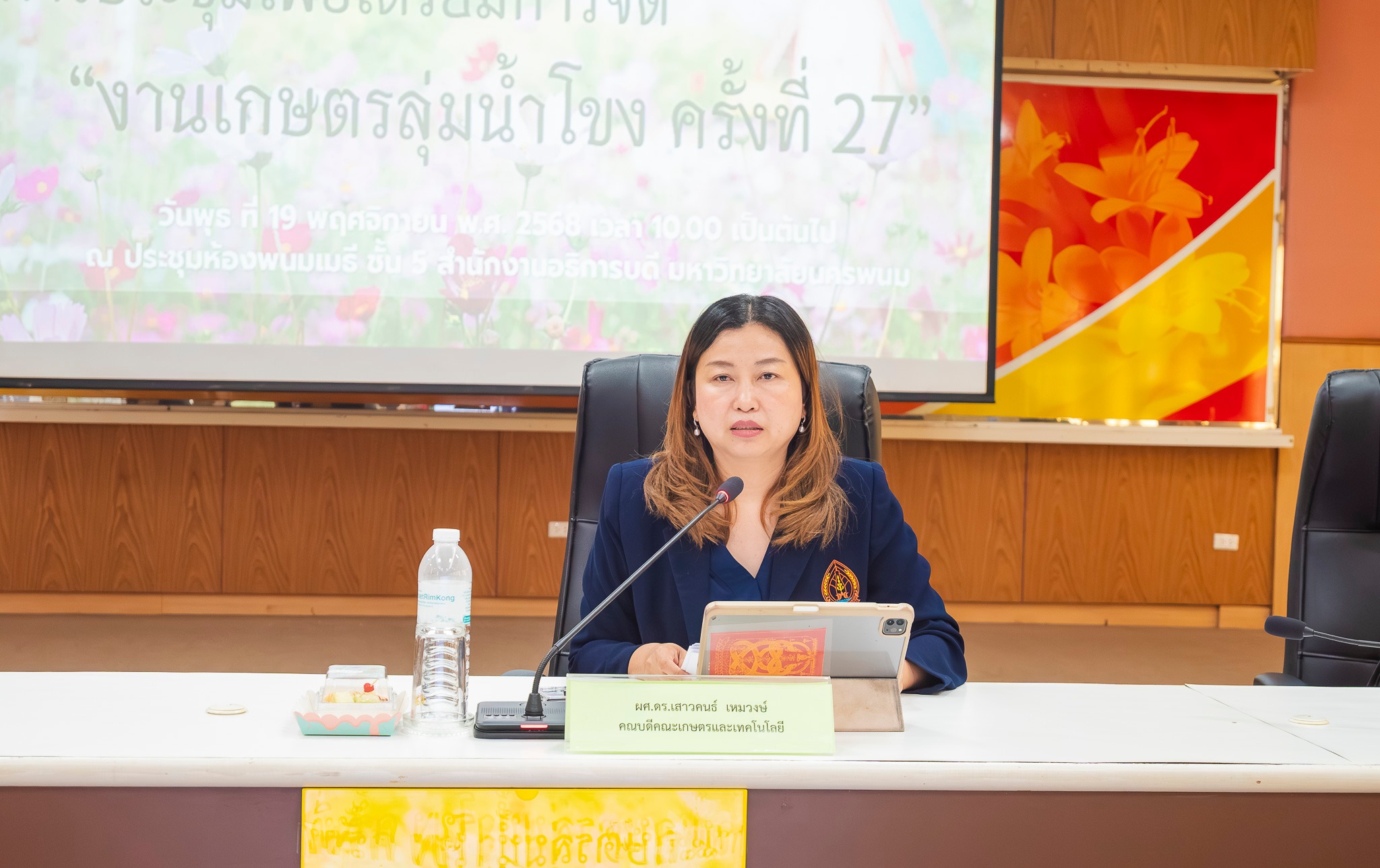 วันที่ 19 พฤศจิกายน พ.ศ. 2568 คณะเกษตรและเทคโนโลยี มหาวิทยาลัยนครพนม ได้จัดประชุมคณะกรรมการการจัดงานเกษตรลุ่มน้ำโขง ครั้งที่ 27 โดยมีผู้ช่วยศาสตราจารย์ ดร.เสาวคนธ์ เหมวงษ์ คณบดีคณะเกษตรและเทคโนโลยี เป็นประธานการประชุม ณ ห้องประชุมพนมเมธี สำนักงานอธิการบดี มหาวิทยาลัยนครพนม