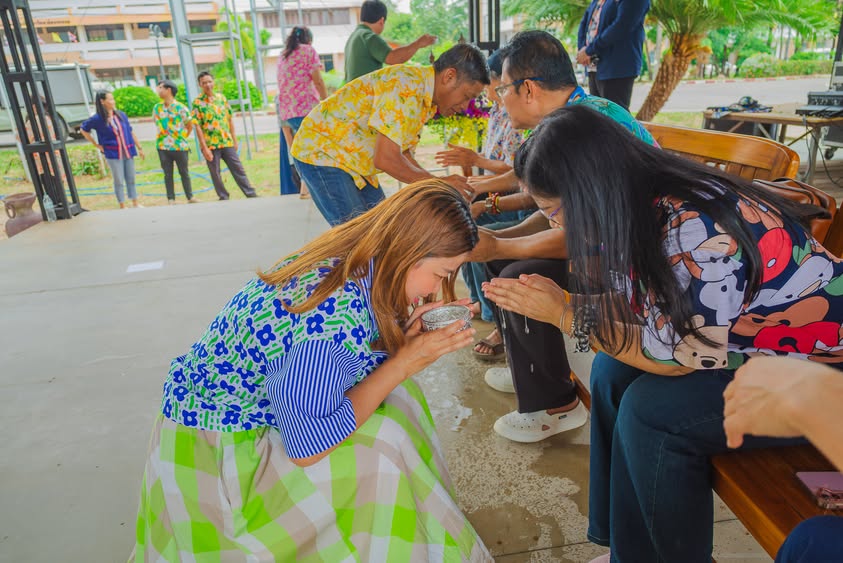 วันที่ 11 เมษายน 2568 คณะเกษตรและเทคโนโลยี มหาวิทยาลัยนครพนม ได้จัดโครงการสืบสารประเพณีวันสงกรานต์รดน้ำขอพรเนื่องในวันปีใหม่ไทย ประจำปี 2568 และส่งเสริมขวัญกำลังใจของบุคลากร “กิจกรรมแลกเปลี่ยนเรียนรู้เติมพลังบวกปรับแนวปฏิบัติที่ดีสู่การพัฒนาองค์กร ณ บริเวณเวทีด้านหน้าอาคารสโมสรนักศึกษา คณะเกษตรและเทคโนโลยี มหาวิทยาลัยนครพนม