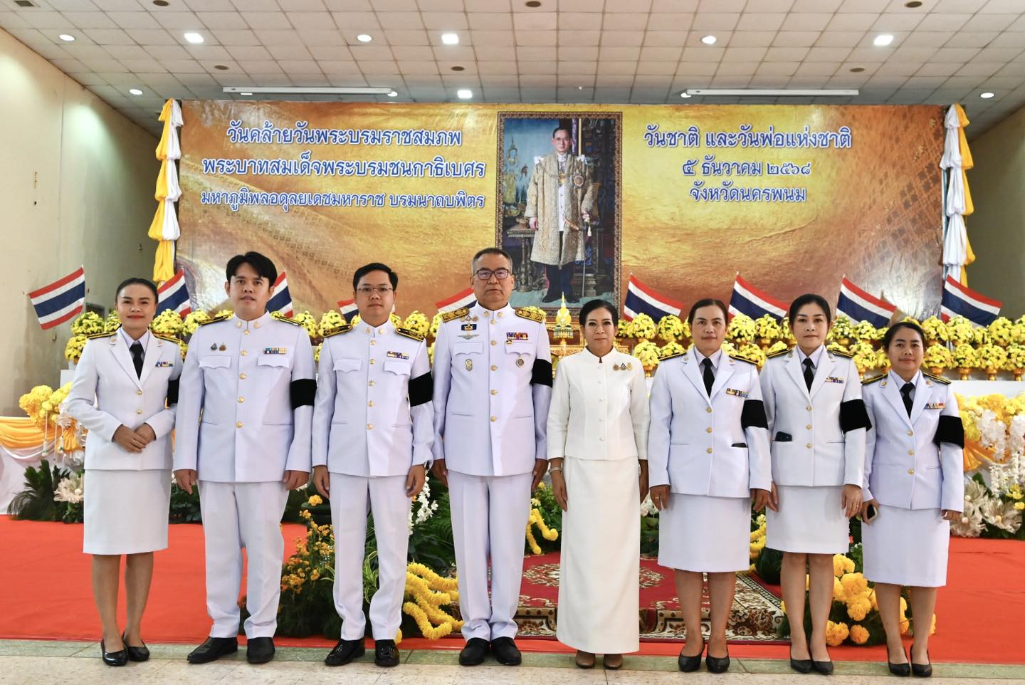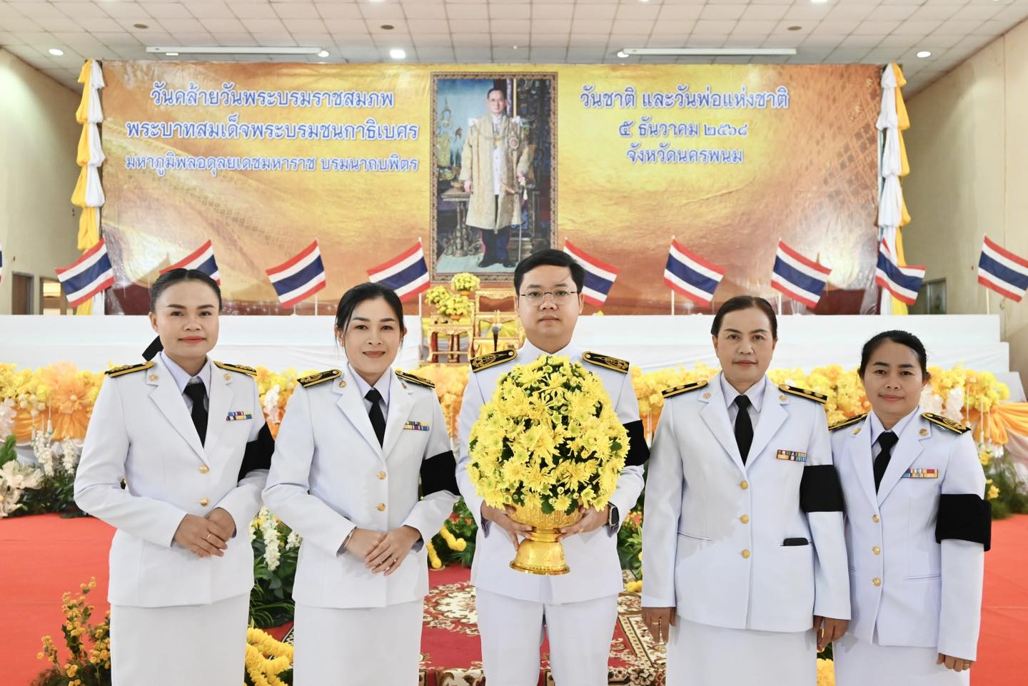 คณะเกษตรและเทคโนโลยี มหาวิทยาลัยนครพนม เข้าร่วมพิธีวางพานพุ่มดอกไม้ถวายบังคม พระบาทสมเด็จพระบรมชนกาธิเบศร มหาภูมิพลอดุลยเดชมหาราช บรมนาถบพิตร เนื่องในวันคล้ายวันพระบรมราชสมภพ วันชาติ และวันพ่อแห่งชาติ