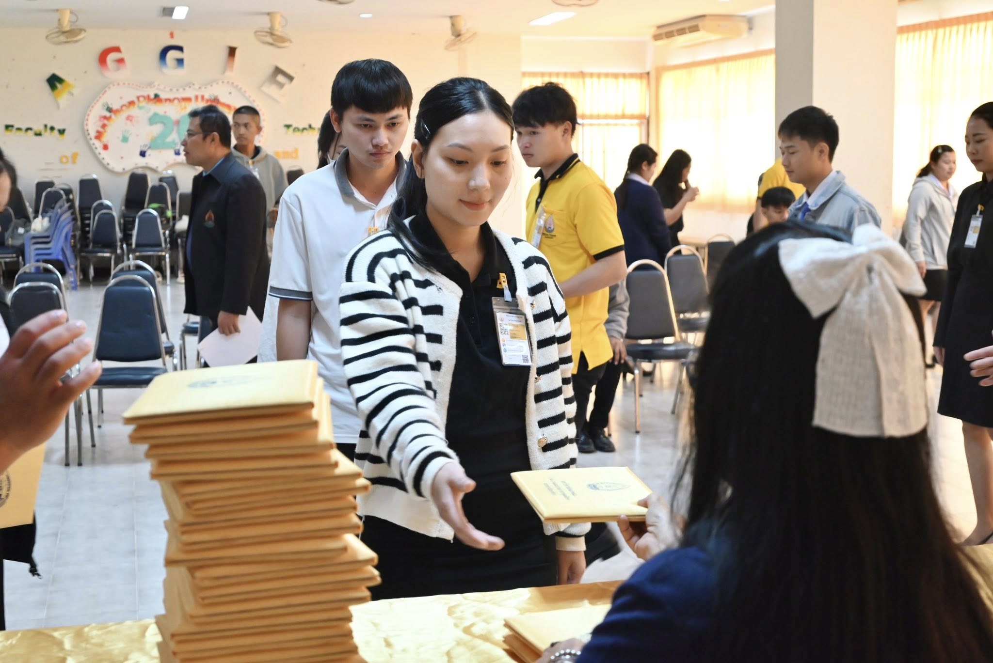 วันที่ 20 ธันวาคม 2568 คณะกรรมการฝ่ายฝึกซ้อมบัณฑิต คณะเกษตรและเทคโนโลยี มหาวิทยาลัยนครพนม จัดกิจกรรมฝึกซ้อมบัณฑิต เพื่อเตรียมความพร้อมในการเข้ารับพระราชทานปริญญาบัตรแก่ผู้สำเร็จการศึกษา ประจำปีการศึกษา 2567 ณ ห้องประชุม 711 อาคารปฏิบัติการสัตวศาสตร์ คณะเกษตรและเทคโนโลยี มหาวิทยาลัยนครพนม