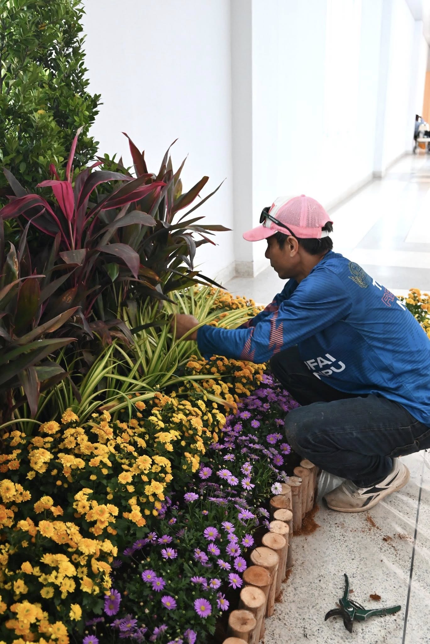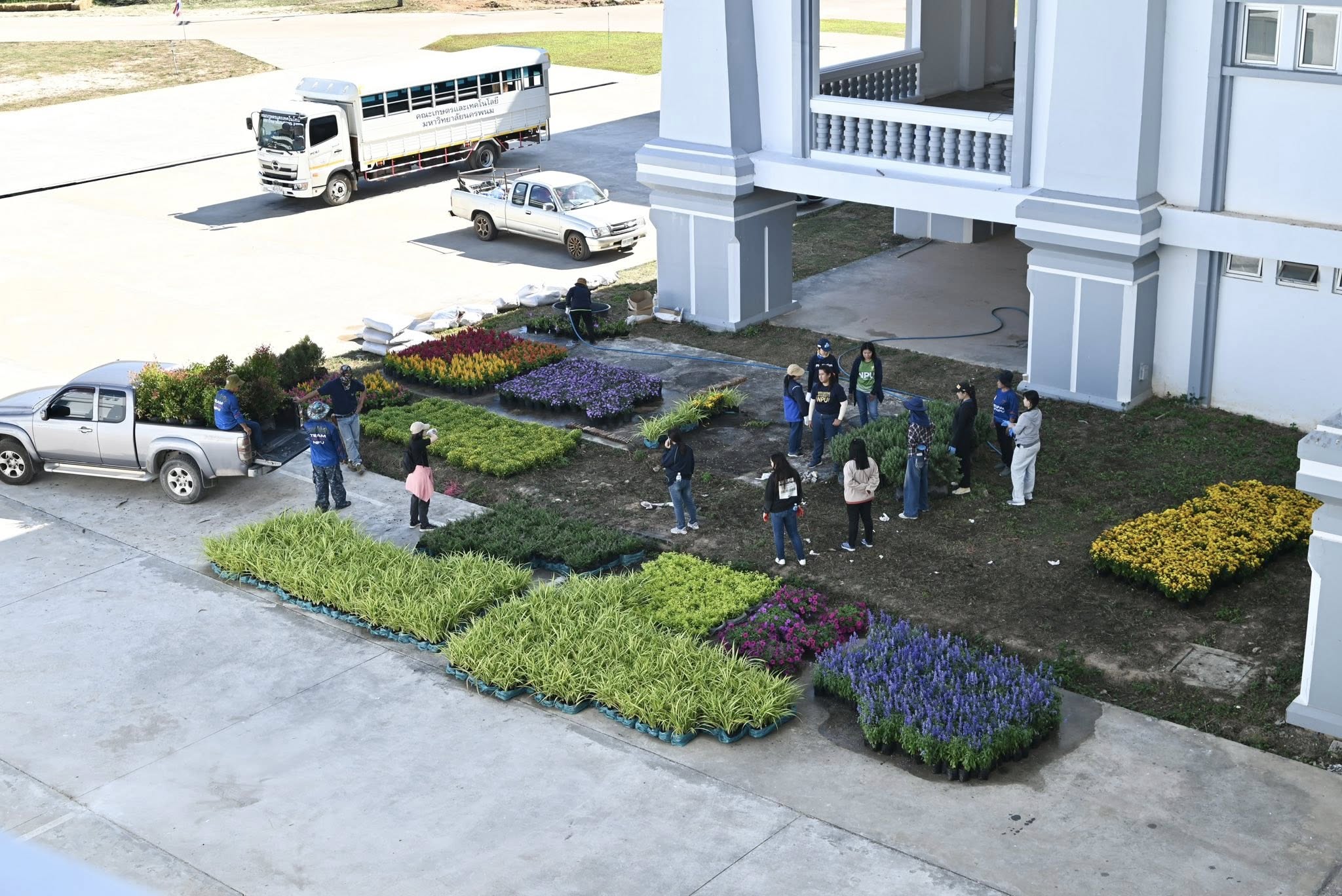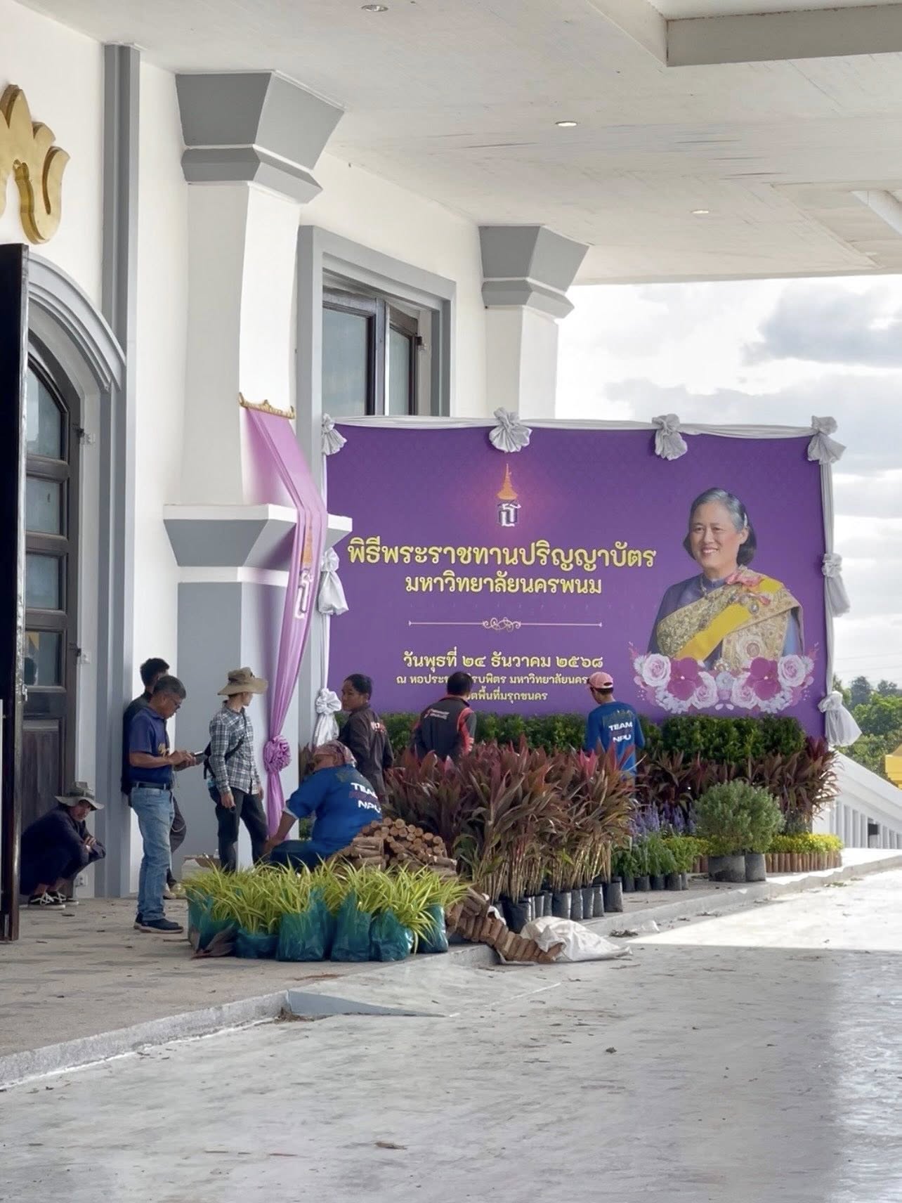 บุคลากรคณะเกษตรและเทคโนโลยี มหาวิทยาลัยนครพนม ร่วมกันดำเนินการจัดตกแต่งและปรับปรุงภูมิทัศน์ด้วยดอกไม้และไม้ประดับ บริเวณโดยรอบอาคารศรีโคตรบูรณ์ เพื่อเตรียมความพร้อมให้มีความเรียบร้อย สวยงาม และสมพระเกียรติแก่การจัดพิธีพระราชทานปริญญาบัตรแก่ผู้สำเร็จการศึกษา มหาวิทยาลัยนครพนม ประจำปีการศึกษา 2567