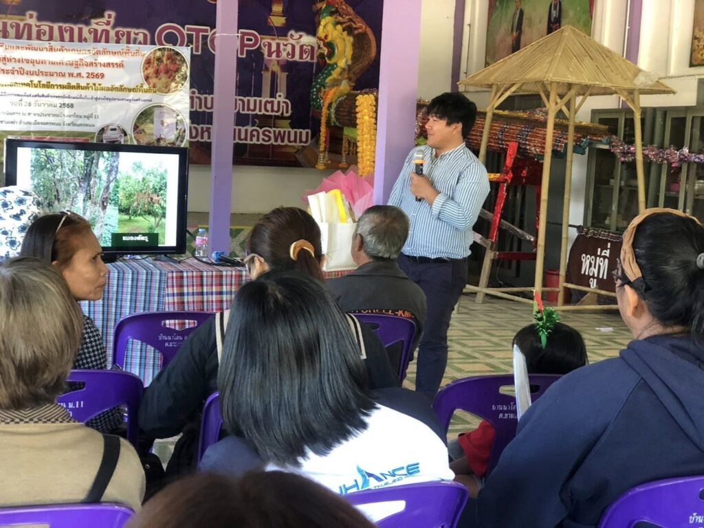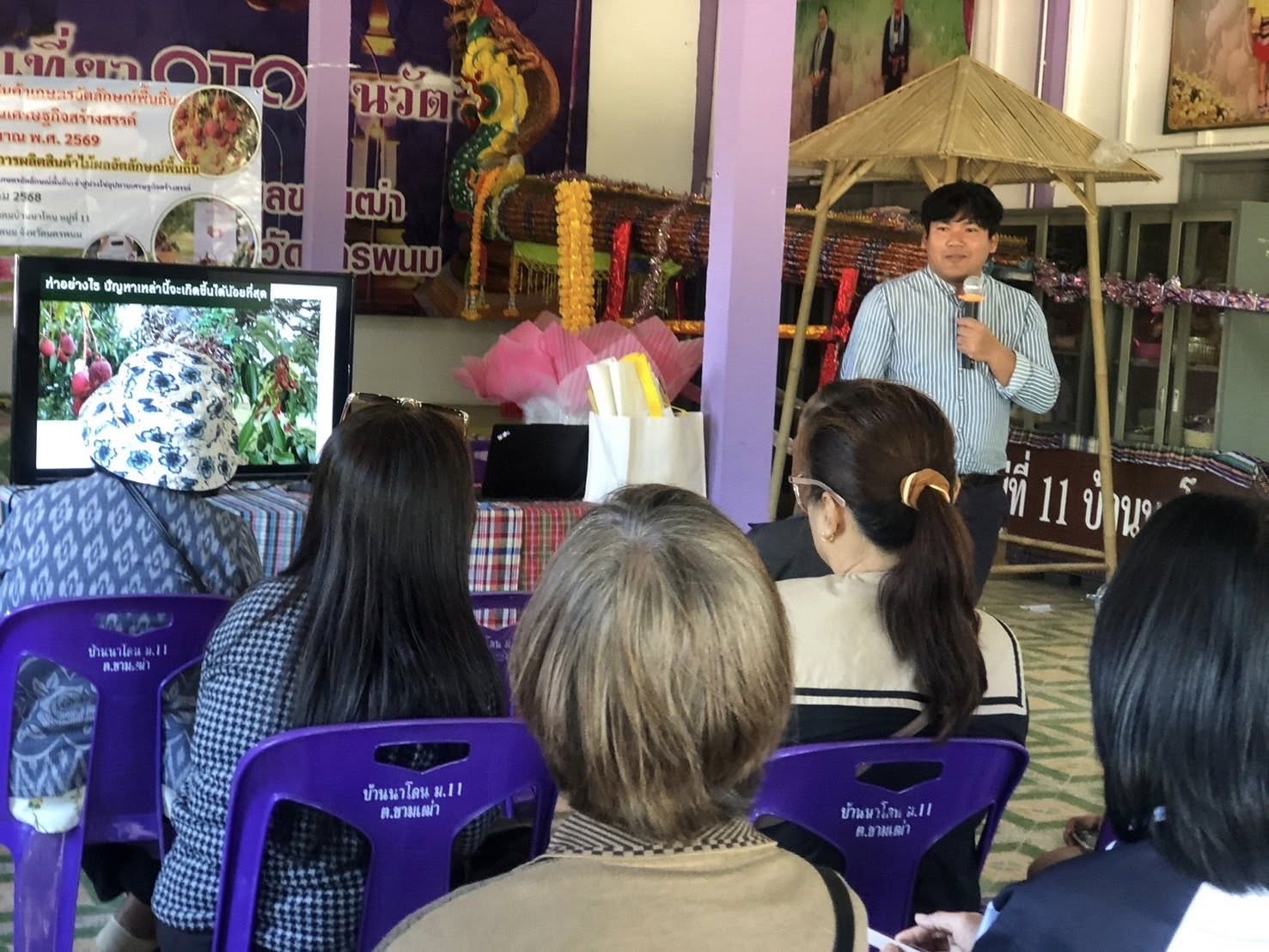 วันที่ 26 ธันวาคม 2568 อาจารย์ ดร.ชัชวาล แสงฤทธิ์ บุคลากรคณะเกษตรและเทคโนโลยี มหาวิทยาลัยนครพนม ได้รับเชิญจาก สำนักงานเกษตรจังหวัดนครพนม ให้เป็นวิทยากรการอบรมถ่ายทอดเทคโนโลยี ในหัวข้อ “เทคนิคการห่อผลจากงานวิจัย สู่การเพิ่มคุณภาพผลผลิตลิ้นจี่ นพ.1” ณ ศาลาประชาคมบ้านนาโดน ตำบลขามเฒ่า อำเภอเมืองนครพนม จังหวัดนครพนม