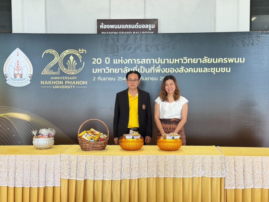 วันที่ 2 กันยายน 2568 บุคลากรคณะเกษตรและเทคโนโลยี มหาวิทยาลัยนครพนม ร่วมทำบุญตักบาตรพระสงฆ์ จำนวน 9 รูป เนื่องในโอกาสครบรอบ 20 ปี แห่งการสถาปนามหาวิทยาลัยนครพนม ณ ห้องวิวโขง หอประชุมวชิรบพิตรมหาวิทยาลัยนครพนม